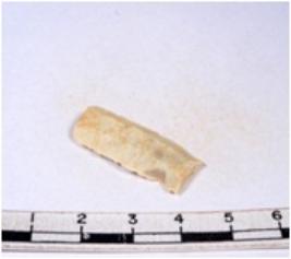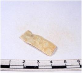 | Description / विवरण | A fragment of a rectangular shaped chert blade showing dorsa sides with sharp edges having smooth surface and triangular section. |