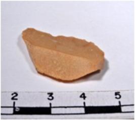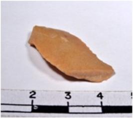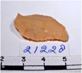 | Description / विवरण | A fragment of a oval shaped chert blade showing dorsal sides with sharp cutting edges having smooth surface and uneven section. |