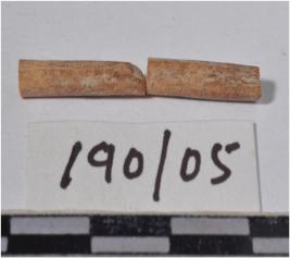 | Description / विवरण | A fragment of a bone point, pointed at one side, circular in section and smooth surface. |