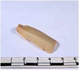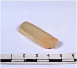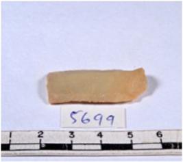 | Description / विवरण | A fragment of a rectangular shaped chert blade showing dorsal sides with sharp edges having smooth surface and triangular section. |