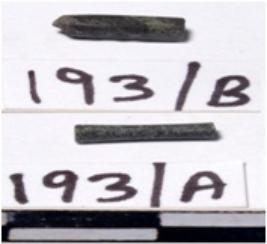 | Description / विवरण | A fragment of a stone drill bit circular in section broken from both end of smooth surface. |