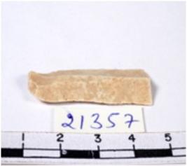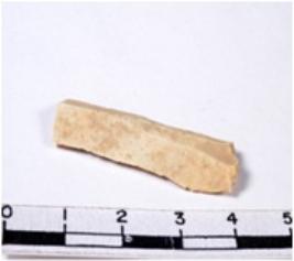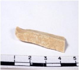 | Description / विवरण | A fragment of a rectangular shaped chert blade showing dorsal sides with sharp cutting edges having smooth surface and triangular section. |