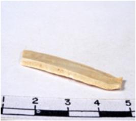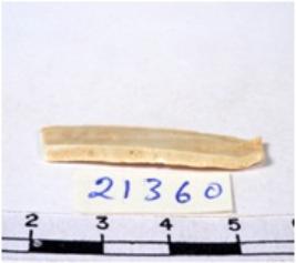 | Description / विवरण | A fragment of a rectangular shaped chalcedony blade showing dorsal sides with sharp cutting edges having smooth surface and uneven section. |