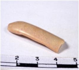 | Description / विवरण | A fragment of a rectangular shaped chert blade showing dorsal sides with sharp edges having smooth surface and triangular section. |