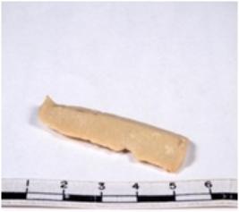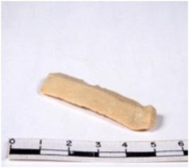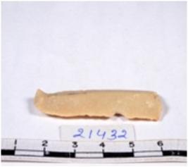 | Description / विवरण | A fragment of a rectangular shaped chert blade showing dorsal sides with sharp edges having smooth surface and triangular section. |