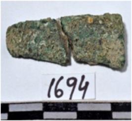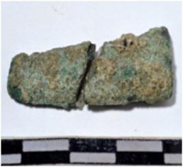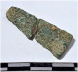| Description / विवरण | A fragment of two pieces copper chisel Having rectangular section on one side and oval other section of rough surface. |