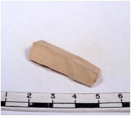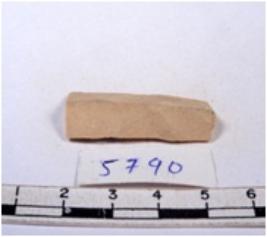 | Description / विवरण | A fragment of a rectangular shaped chert blade showing dorsal sides with sharp edges having smooth surface and triangular section. |