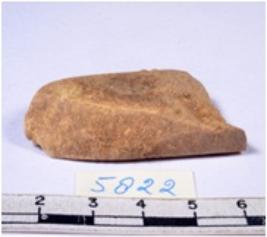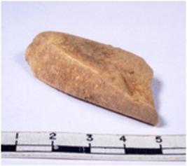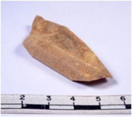 | Description / विवरण | A fragment of a rectangular shaped chert blade showing dorsal sides with sharp cutting edges having smooth surface and triangular section. |