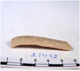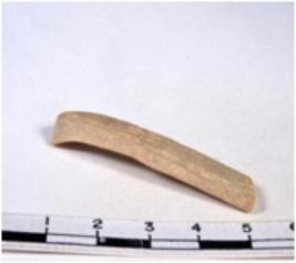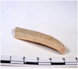 | Description / विवरण | A fragment of a rectangular shaped chert blade showing dorsal sides with sharp cutting edges having smooth surface and triangular section. |