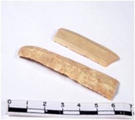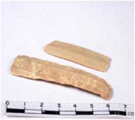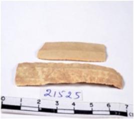| Description / विवरण | A fragment of a rectangular shaped chert blade showing dorsal sides with sharp cutting edges having smooth surface and triangular section. |
