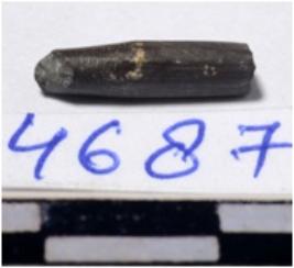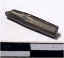 | Description / विवरण | A fragment of a stone drill bit circular in section pointed on one end of smooth surface. |