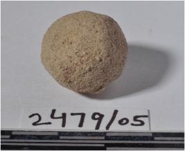 | Description / विवरण | A small stone sling ball round in shape of rough surface. |