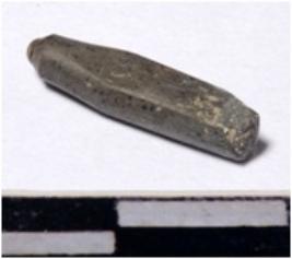 | Description / विवरण | A fragment of a stone drill bit circular in section broken from one end of smooth surface. |
