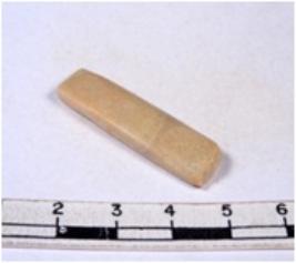 | Description / विवरण | A fragment of a rectangular shaped chert blade showing parallel sides with sharp edges having smooth surface and uneven section. |