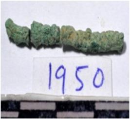 | Description / विवरण | A fragment of a copper rod broken from both sides, circular in section of rough surface. |