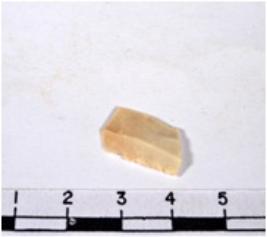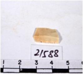 | Description / विवरण | A fragment of a rectangular shaped chert blade showing dorsal sides with sharp cutting edges having smooth surface and uneven section. |
