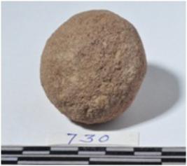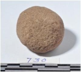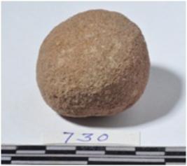 | Description / विवरण | A stone sling ball round in shape of rough surface. |
