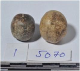 | Description / विवरण | A stone sling ball round in shape of rough surface. |