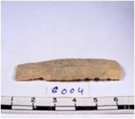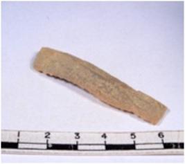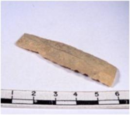 | Description / विवरण | A fragment of a rectangular shaped chert blade showing dorsal sides with sharp cutting edges having smooth surface and triangular section. |