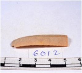 | Description / विवरण | A fragment of a rectangular shaped chert blade showing parallel sides with sharp edges having smooth surface and triangular section. |