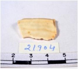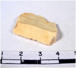 | Description / विवरण | A fragment of a rectangular shaped chert blade showing dorsal sides with sharp cutting edges having smooth surface and triangular section. |