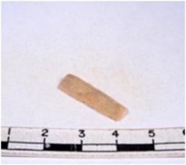 | Description / विवरण | A fragment of a rectangular shaped chert blade showing dorsal sides with sharp edges having smooth surface and triangular section. |