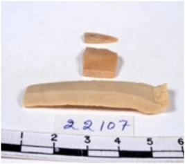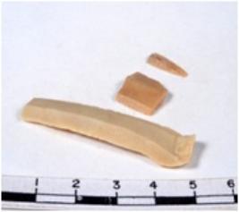 | Description / विवरण | A fragment of a rectangular shaped chert blade showing dorsal sides with sharp cutting edges having smooth surface and triangular section. |