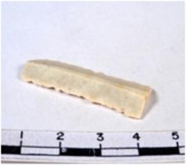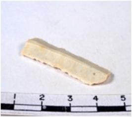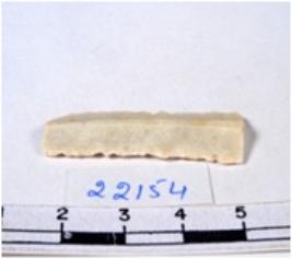 | Description / विवरण | A fragment of a rectangular shaped chert blade showing dorsal sides with sharp cutting edges having smooth surface and uneven section. |