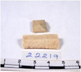 | Description / विवरण | A fragment of a rectangular shaped chert blade showing dorsal sides with sharp edges having smooth surface and triangular section. |