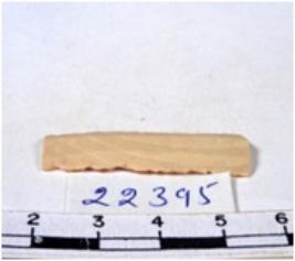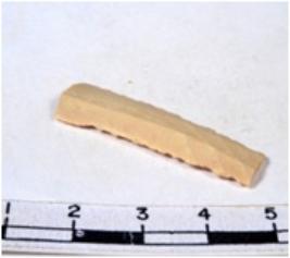| Description / विवरण | A fragment of a rectangular shaped chert blade showing dorsal sides with sharp cutting edges having smooth surface and uneven section. |
