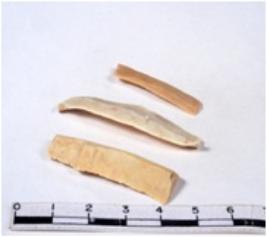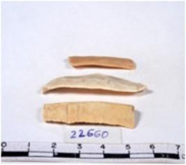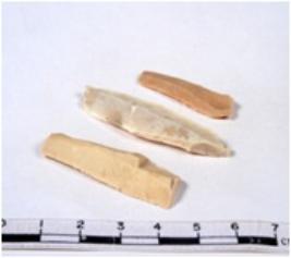 | Description / विवरण | A fragment of a rectangular shaped chert blade showing dorsal sides with sharp cutting edges having smooth surface and triangular section. |