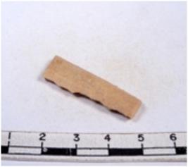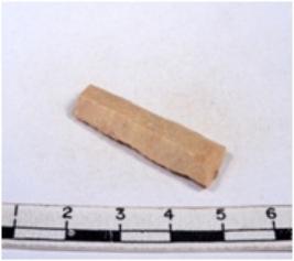 | Description / विवरण | A fragment of a rectangular shaped chert blade showing parallel sides with sharp edges having smooth surface and uneven section. |
