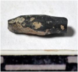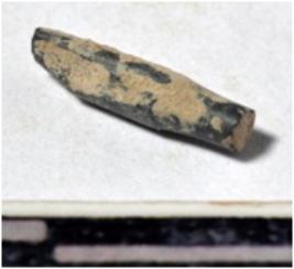 | Description / विवरण | A fragment of a stone drill bit, circular in section, broken from both ends of rough surface. |