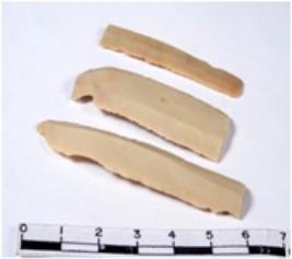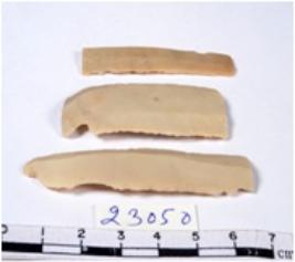 | Description / विवरण | A fragment of a rectangular shaped chert blade showing dorsal sides with sharp edges having smooth surface and triangular section. |