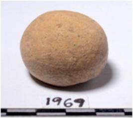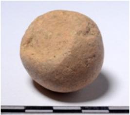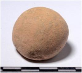 | Description / विवरण | A fragment of a terracotta sling ball, round in shape, circular in section of smooth surface. |