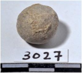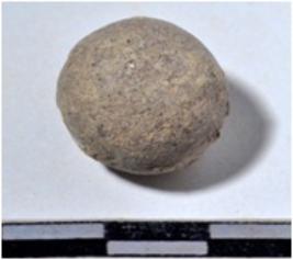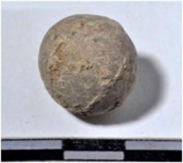 | Description / विवरण | A stone sling ball, round in shape of rough surface. |