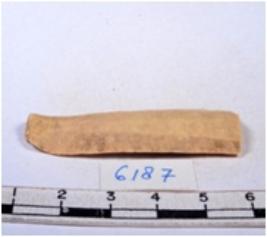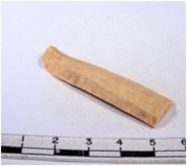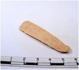 | Description / विवरण | A fragment of a rectangular shaped chert blade showing dorsal sides with sharp cutting edges having smooth surface and triangular section. |