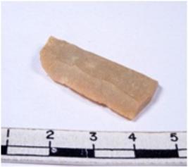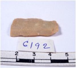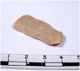 | Description / विवरण | A fragment of a rectangular shaped chert blade showing parallel sides with sharp edges having smooth surface and uneven section. |