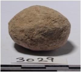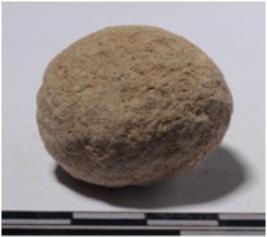 | Description / विवरण | A stone sling ball round in shape of rough surface. |
