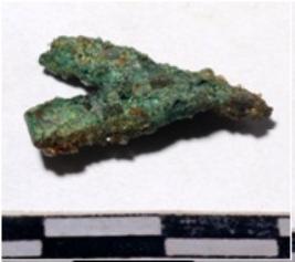 | Description / विवरण | A copper arrow head triangular in shape of rough surface. |