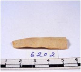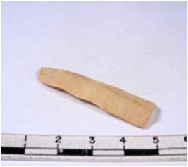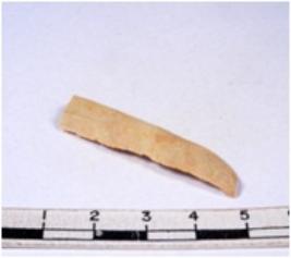| Description / विवरण | A fragment of a rectangular shaped chert blade showing dorsal sides with sharp cutting edges having smooth surface and triangular section. |