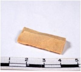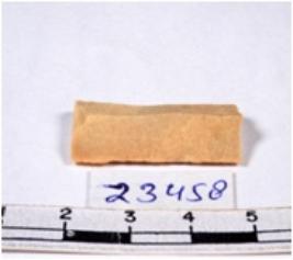 | Description / विवरण | A fragment of a rectangular shaped chert blade showing parallel sides with sharp edges having smooth surface and triangular section. |