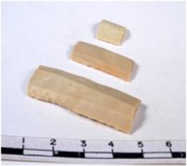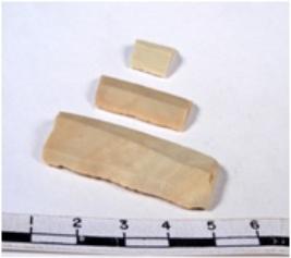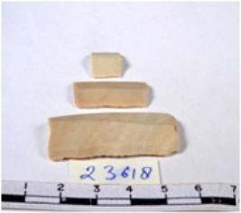 | Description / विवरण | A fragment of a rectangular shaped chert blade showing dorsal sides with sharp cutting edges having smooth surface and triangular section. |