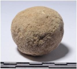 | Description / विवरण | A stone sling ball round in shape of rough surface. |