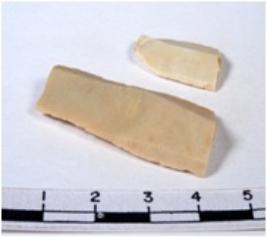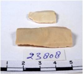 | Description / विवरण | A fragment of a rectangular shaped chert blade showing dorsal sides with sharp cutting edges having smooth surface and triangular section. |