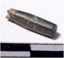 | Description / विवरण | A fragment of a stone drill bit circular in section broken from one end of smooth surface. |