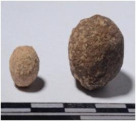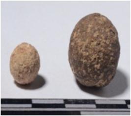 | Description / विवरण | A stone sling ball, round in shape of smooth surface. |