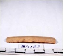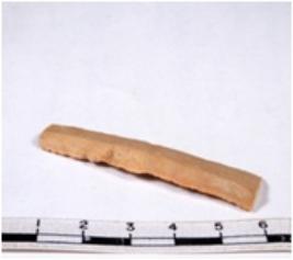 | Description / विवरण | A fragment of a rectangular shaped chert blade showing dorsal sides with sharp cutting edges having smooth surface and triangular section. |