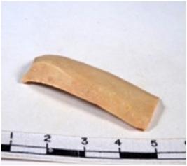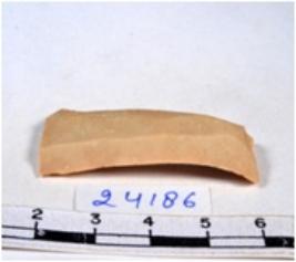 | Description / विवरण | A fragment of a rectangular shaped chert blade showing dorsal sides with sharp cutting edges having smooth surface and triangular section. |