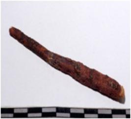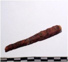 | Description / विवरण | A fragment of a copper chisel, sharpened one end, square in section of rough surface. |